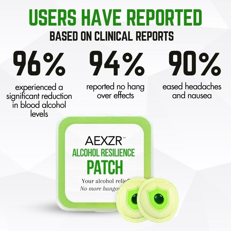 Dr. Emily Martinez, a renowned hepatologist, said, "A clinical study conducted by leading experts in alcohol metabolism demonstrated that participants who used the AEXZR™ Alcohol Resilience Patch experienced a significant reduction in blood alcohol levels and reported fewer hangover symptoms compared to a control group. The AEXZR™ patch's approach to alcohol resilience is promising. Its combination of key ingredients and innovative technology shows potential in mitigating the effects of alcohol on the body."