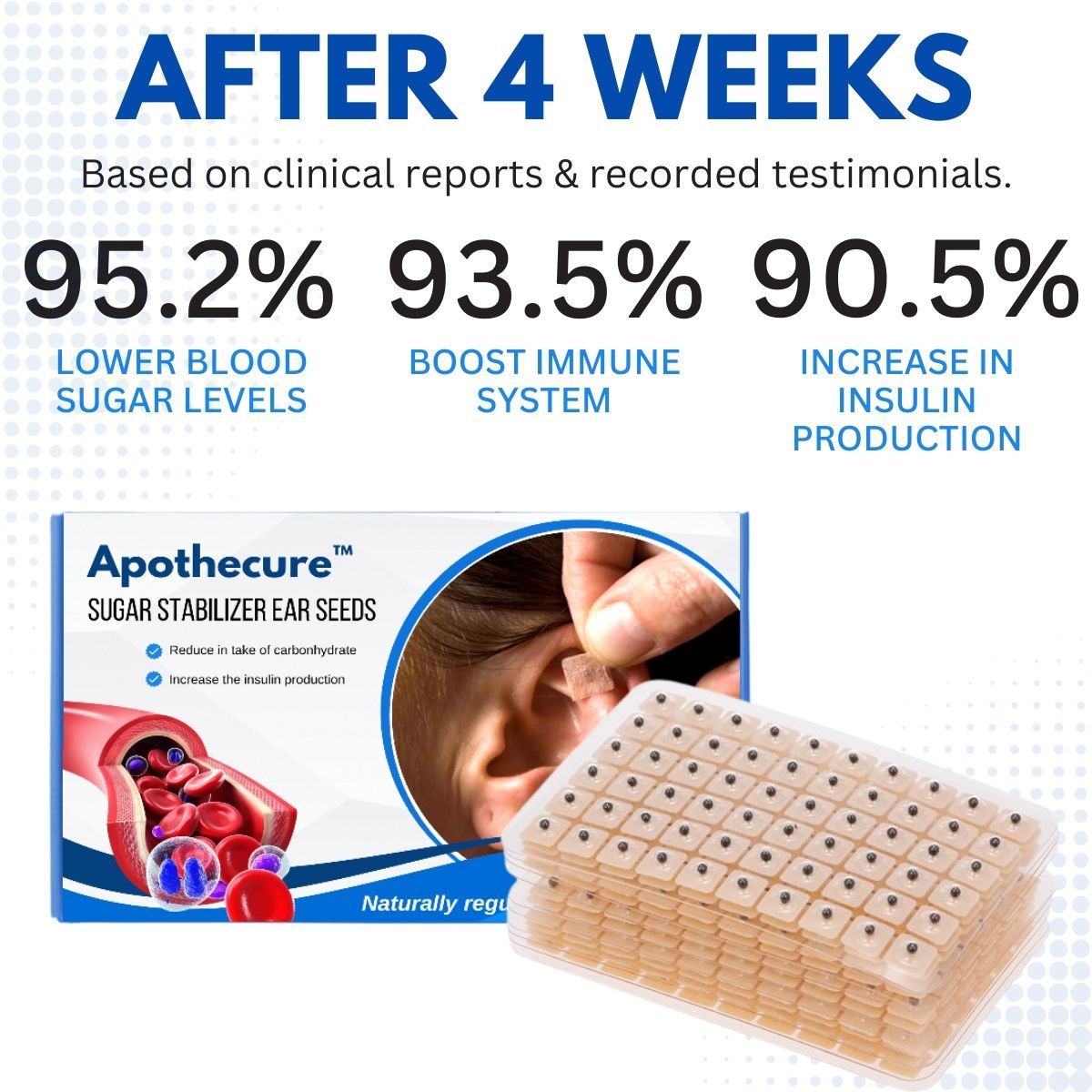 "As a doctor, I am always looking for innovative and natural solutions for my patients. That's why I'm excited about Apothecure™ Sugar Stabilizer Ear Seeds. In my clinical experience, I have seen the positive effects of Apothecure™ on regulating blood sugar levels and reducing the symptoms associated with unstable blood sugar levels, such as fatigue, irritability, and mood swings. This has been extremely beneficial to my patients," says Dr. David Charles.