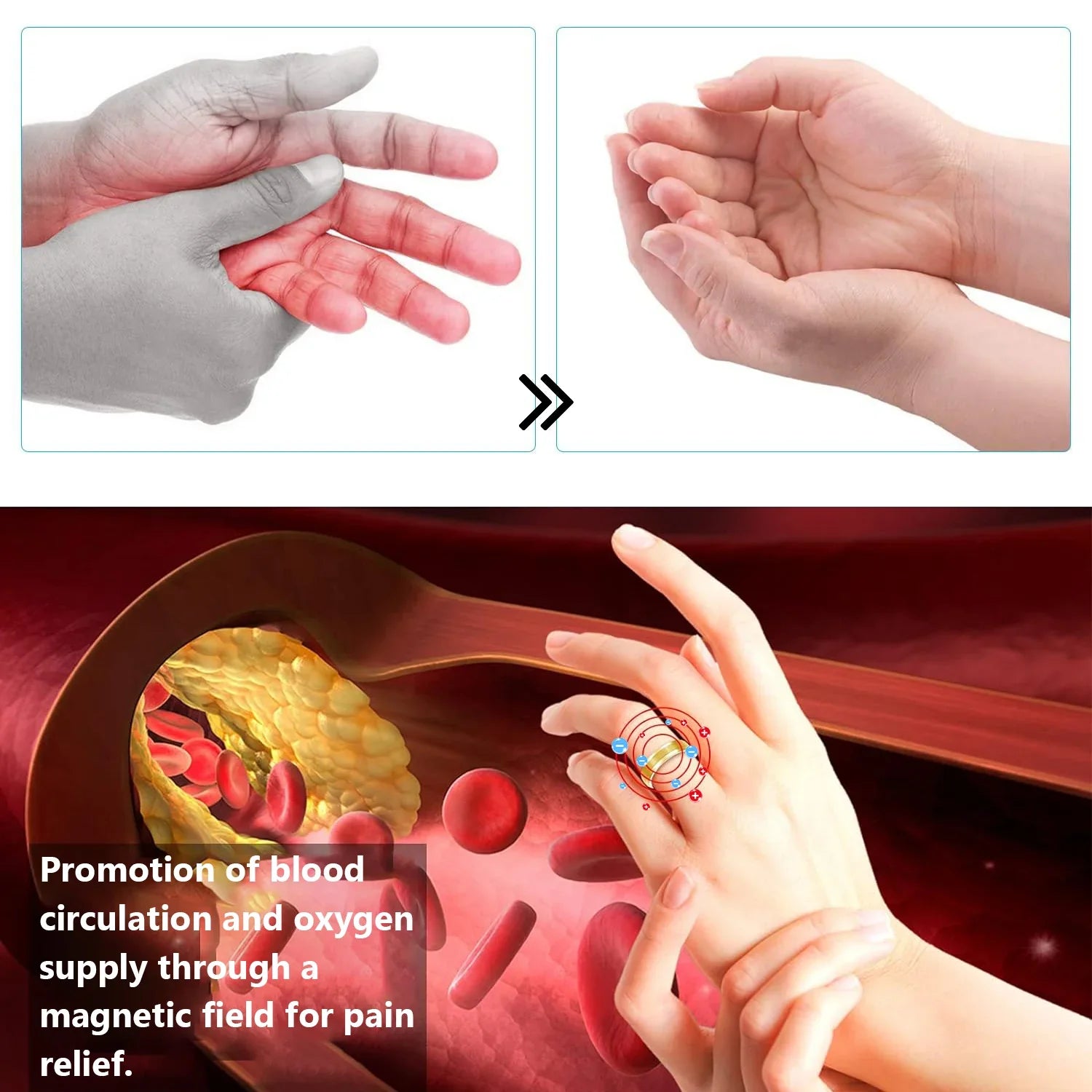 Scientific studies have shown that acupressure massage can effectively reduce pain intensity in patients with chronic back pain and joint conditions. The Futusly™ ring offers a natural, non-invasive way of relief by emitting a magnetic field to promote blood flow and oxygenation in the affected area, thus alleviating pain.