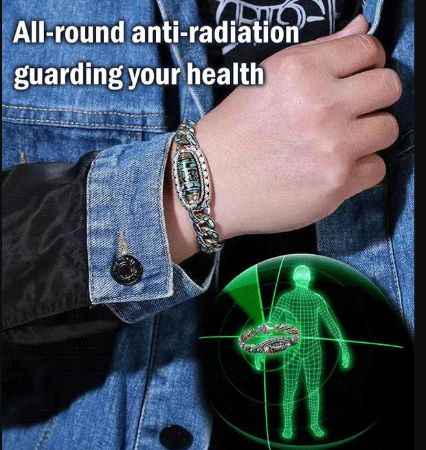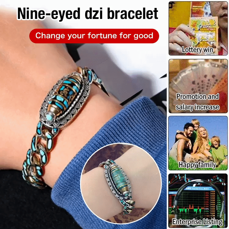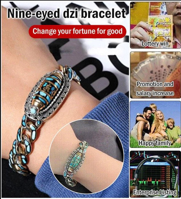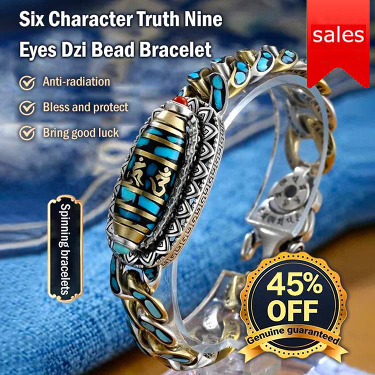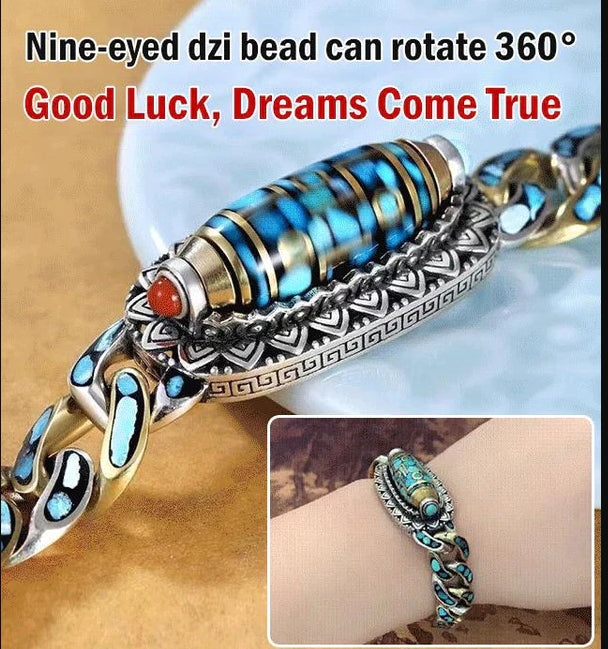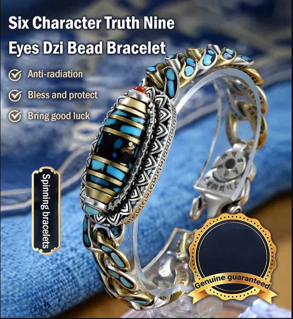 TURQUOISE SIX-CHARACTER MANTRA NINE-EYED DZI BEAD BRACELET