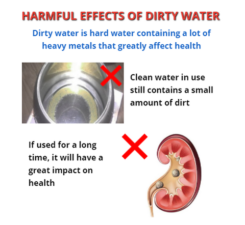 Dirty water is hard water containing a lot of heavy metals that greatly affect health