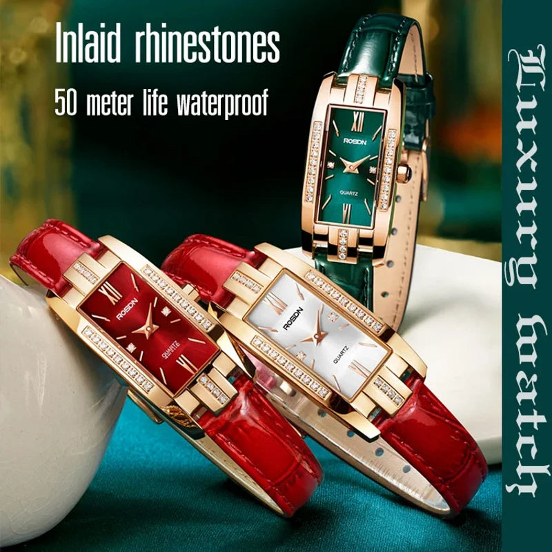 2022 new elegant temperament square ladies quartz watch Korean personality small green watch belt ladies watch