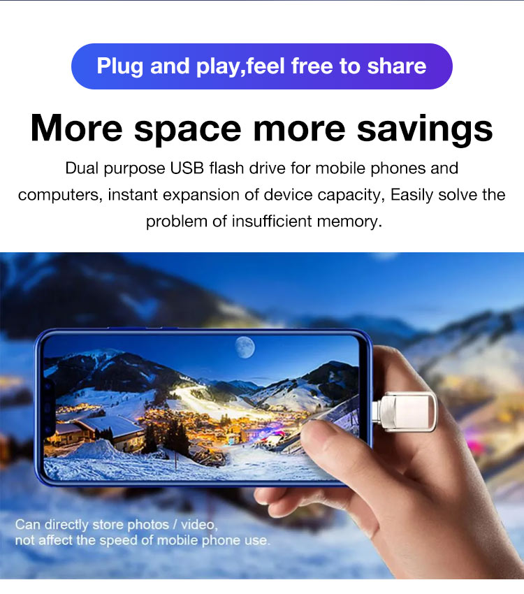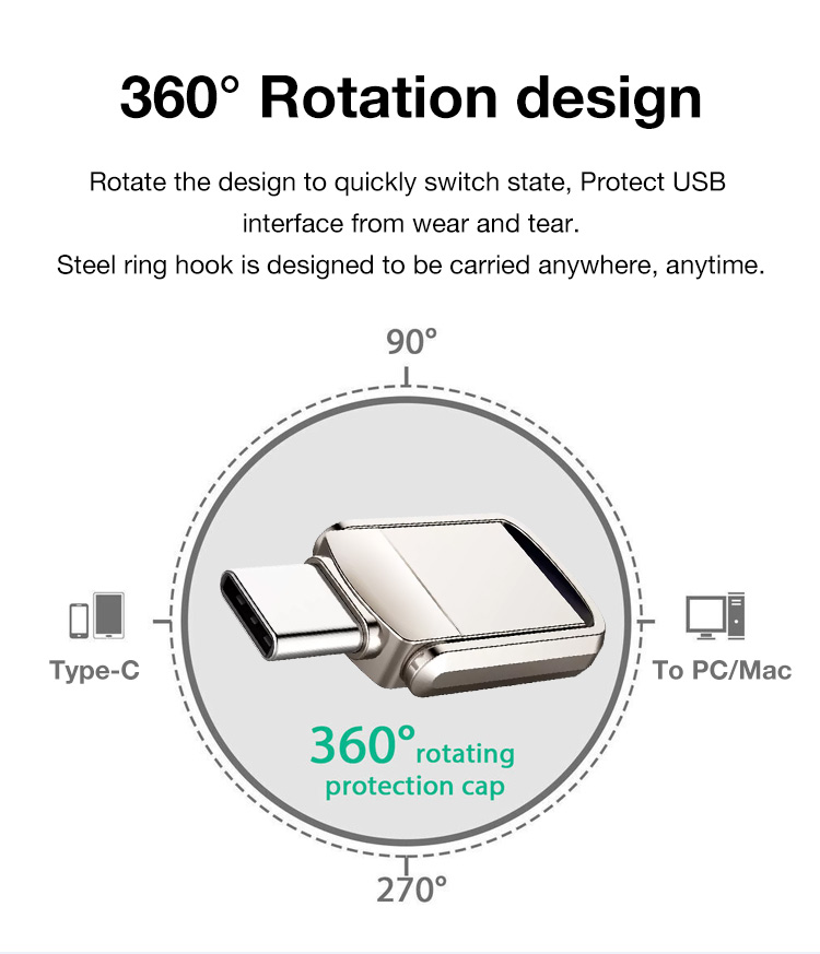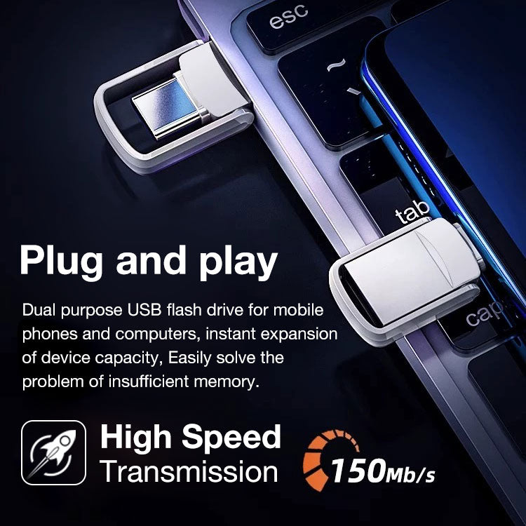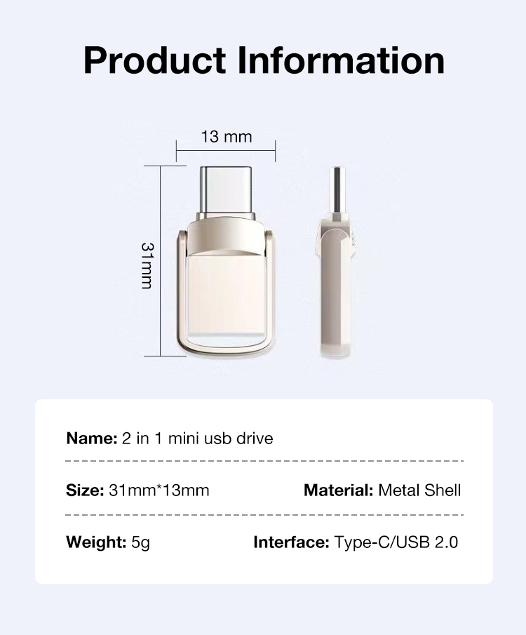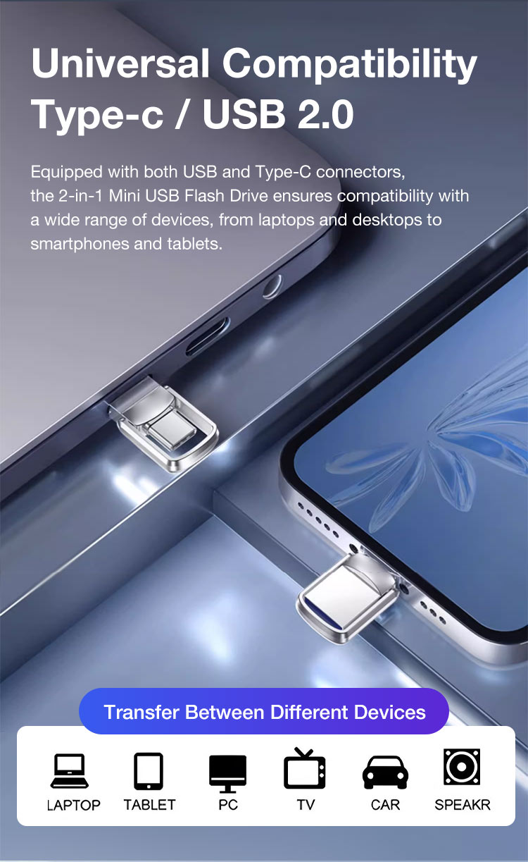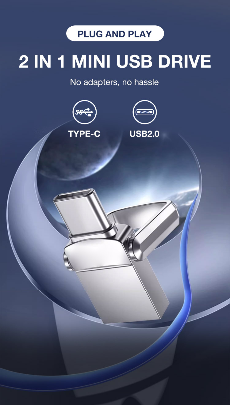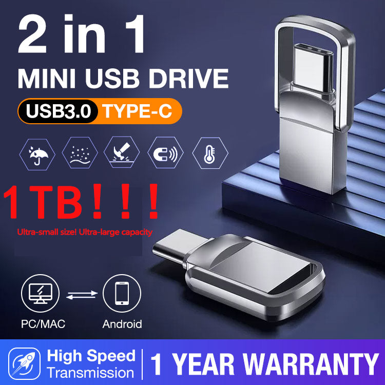 One year warranty-2 in 1 mini usb drive-Plug and play/USB-A and Type-C/Fast transfer speed/Invisible design