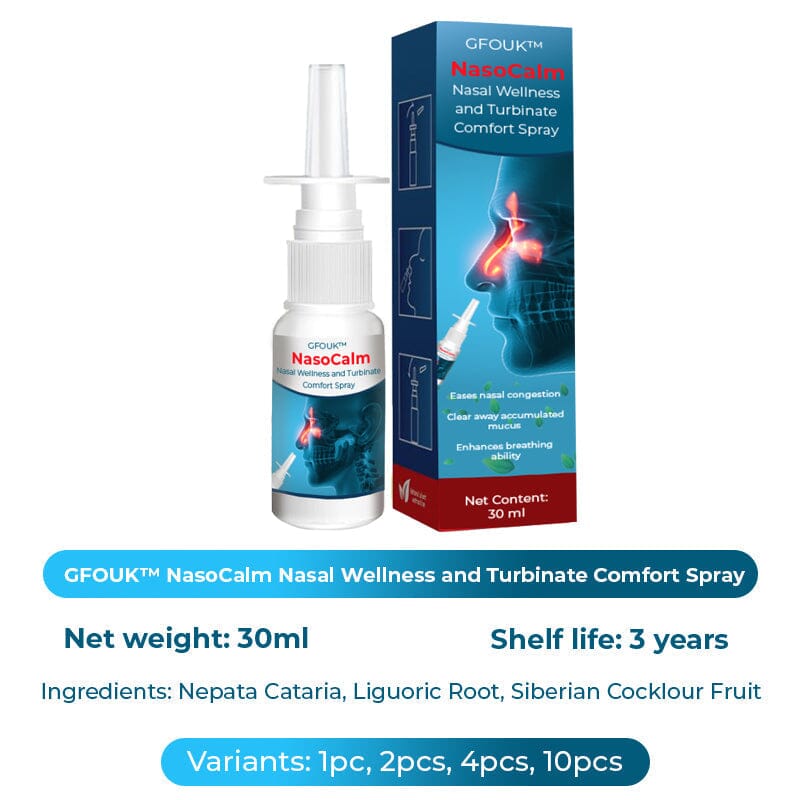 The GFOUK™ NasoCalm Nasal Wellness and Turbinate Comfort Spray appears to be a product designed to provide relief from various nasal conditions and improve overall nasal health.