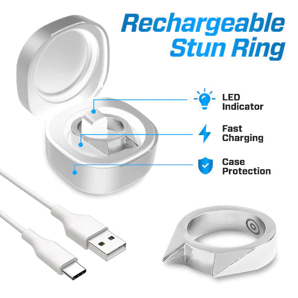 This stun ring looks like a regular fashion accessory, but don't be fooled - it's incredibly strong. Despite its small size, it offers maximum protection, with more power than standard stun guns. Plus, it stays securely on your finger thanks to its sleek design - and you can even wear two together for double the power. Be ready for whatever life throws at you!